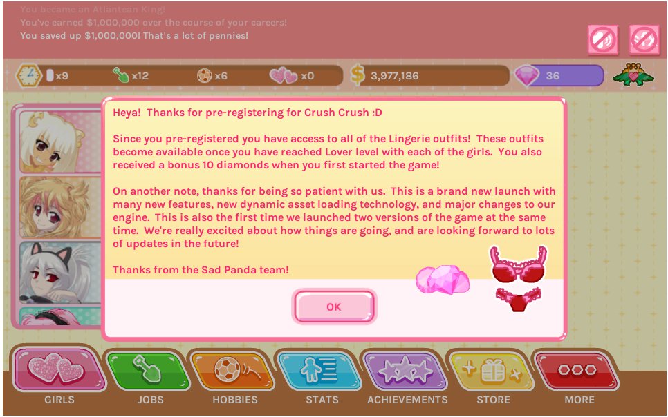 Trending Crush Crush All Outfits Just needed to add a measly 5 bucks worth of diamonds (that cost 4 bucks.) to get them all. Crush Crush All Outfits : Cheat in this game and more with the wemod app!
