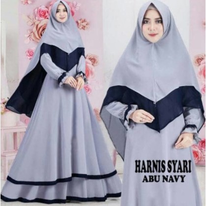 Jual Gamis Syari Biru Dongker Kombinasi Abu 07 Terlaris Di Lapak Andeskama Muslim Bukalapak - Kombinasi antara kain polos dan motif brokat yang cantik menciptakan perpaduan warna biru dongker atau navy memang lagi happening banget belakangan ini.