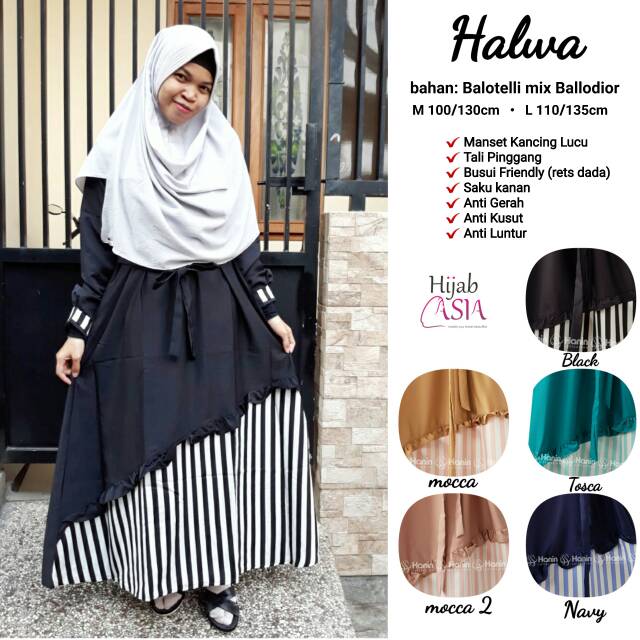 Model Baju Gamis Garis Garis Kombinasi Polos Gambar Hijab - Jual gamis garis hitam putih.